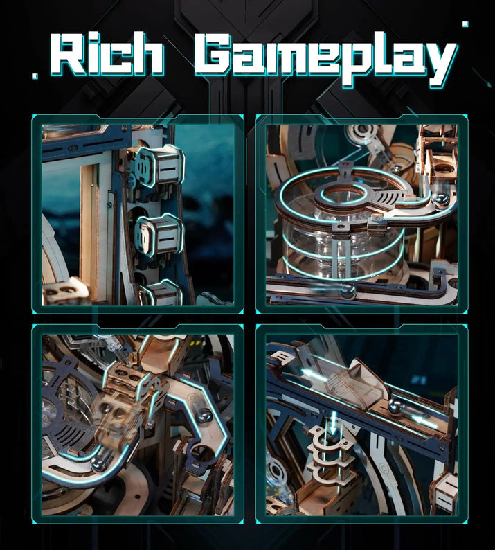 Circuit à billes mécanique en bois – Puzzle 3D (Night City)